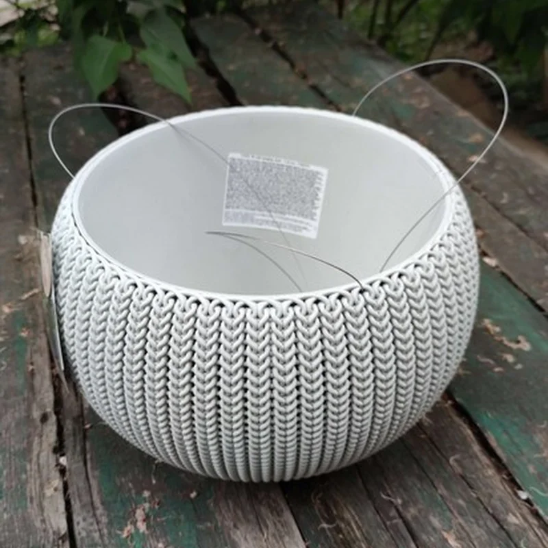 Овальне кашпо - новинка серед кашпо виробництва компанії KETER - дизайн оригінально виконаний під «в'язану шерсть», створює відчуття затишку і м'якості. Це відмінне доповнення до будь-якого комплекту меблів виробництва групи компаній KETER. Кашпо може використовуватися як на вулиці, так і в приміщенні.