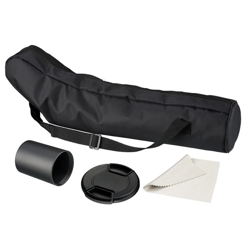 Потовщене гумове покриття чорного кольору надійно захищає прилад від пошкоджень і забезпечує надійне захоплення підзорної труби рукою. Для максимального комфорту спостереження окуляр встановлений під кутом 45º. У комплект поставки входить настільний штатив-тринога для польових спостережень. Труба повертається в хомуті на 340º для досягнення найбільш зручного кута спостережень. Для зручності транспортування і зберігання можна використовувати зносостійкий нейлоновий чохол на замку.