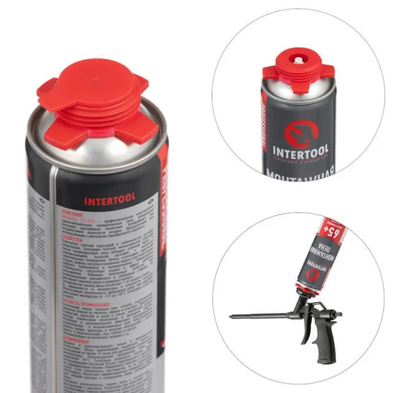 Професійна монтажна піна INTERTOOL FS-1010 призначена для установки, ізоляції та зміцнення віконних рам, підвіконь, дверних блоків. З її допомогою заповнюють та герметизують шви, тріщини, стики, отвори і порожнечі. Проводять ізоляцію, додаткову фіксацію водопровідних, опалювальних та каналізаційних труб. Ідеально підходить для термо- і звукоізоляції стін, стель, дахів.