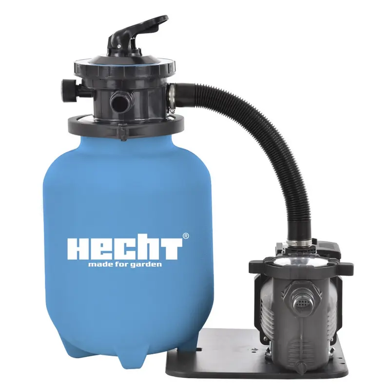 Піщаний фільтр 10" з попереднім фільтром грубої очистки. Витрата 6 м3/год. Перевагою є попередній фільтр, який запобігає пошкодженню насоса від всмоктування предметів, що можуть його засмітити або пошкодити лопаті турбіни насоса. Система оснащена манометром, який контролює тиск, завдяки йому ви завжди маєте огляд правильної роботи фільтра та необхідності промивання. Ідеальне поєднання високоякісної ємності з поліпропілену, має високу міцність та тривалість терміну служби, з потужним насосом що оснащений фланцями для шлангів діаметром 32 і 38 мм. (шланги в комплект не входять). Семиходовий клапан з можливістю налаштування режимів фільтрації, промивання. Простий принцип потоку води через кремнеземний пісок, який вловлює дрібні домішки та повертає в басейн лише чисту відфільтровану воду. Простий монтаж і введення в експлуатаці.