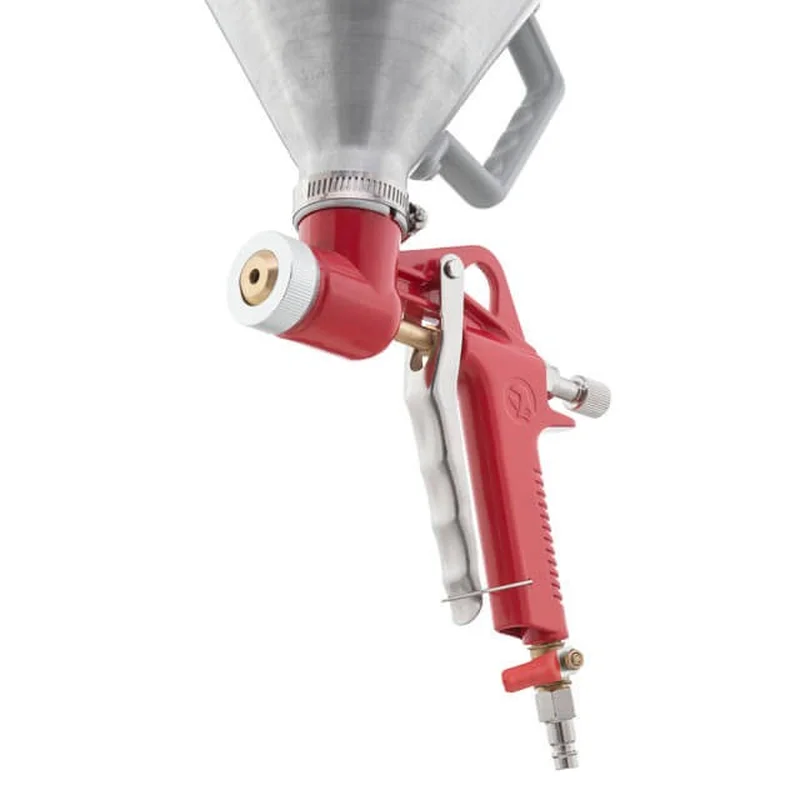 В конструкції пневматичного пістолета передбачена можливість перекриття подачі повітря, а також регулювання подачі матеріалу. У комплект входять три латунні форсунки діаметром 4, 6, 8 мм для використання з розчинами різної в'язкості.