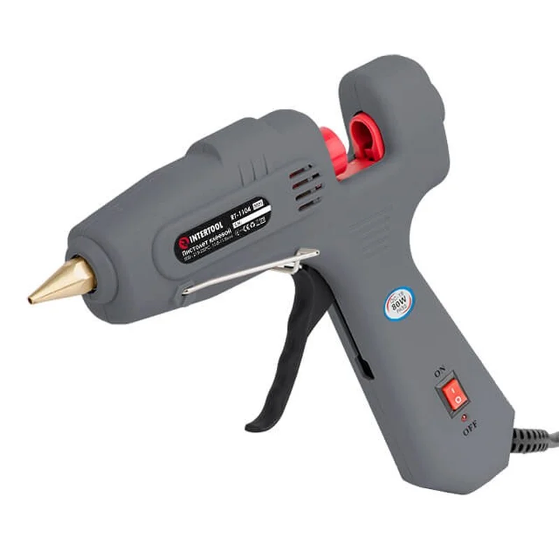 Пістолет клейовий 80 Вт, 230 В, 215-230°C під стрижні 10.8-11.5 мм, 13-30 г/хв. INTERTOOL RT-1104
