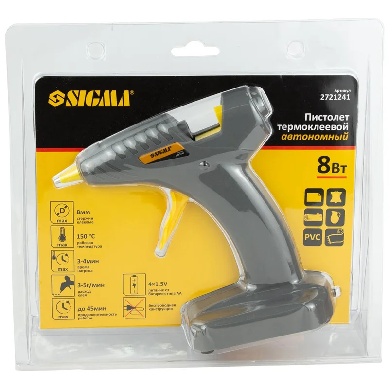 Пістолет термоклейовий автономний Ø8мм 8Вт/6В SIGMA (2721241)