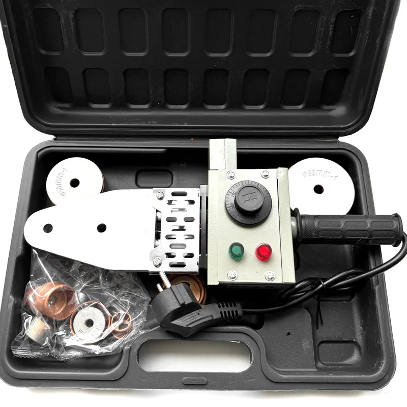Зварювальний набір PPR із насадками для труб. Даний апарат може застосовуватись із пластиковими трубами типу PPR. Апарат дозволяє контролювати температуру, легко керований та безпечний.