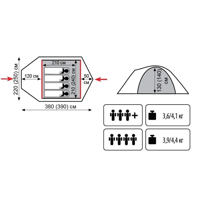 Чотиримісна універсальна туристичний намет Tramp Lite CAMP 3 призначена для туристичних походів і відпочинку на природі у весняний, літній і осінній час.