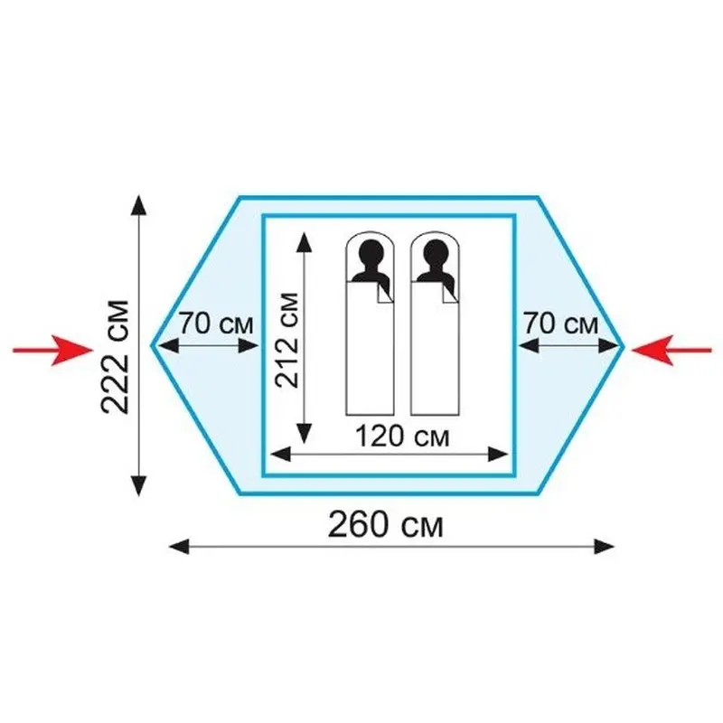 - Легка двошаровий намет з двома входами