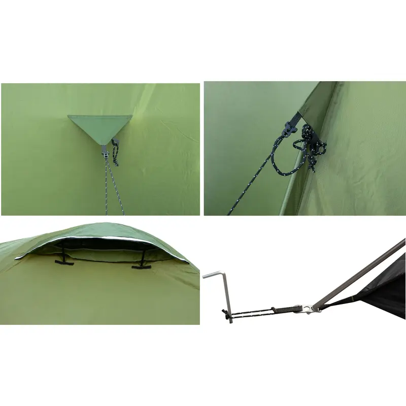 - Два вентиляційних клапана відкриваються зовні і зсередини намету.