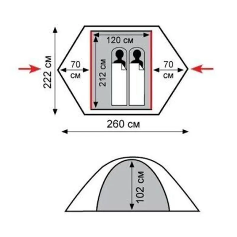 - Двошаровий намет з двома входами.