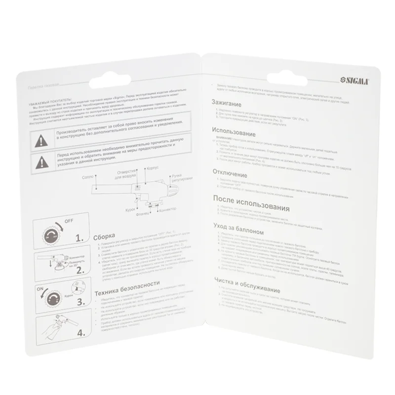 Пальник газовий з пьезоподжигом SIGMA (2901401) застосовується в побутових, ремонтних, будівельних і туристичних цілях. Наприклад, при карамелізації цукру на десертах, поливання, додання кольору і текстури, підпалювання міцних напоїв. Також використовується для розпалювання дров і вугілля, відтавання труб, замків, підігріву автомобільних двигунів, випалу старої фарби, пайки мідних труб і виготовлення ювелірних виробів.