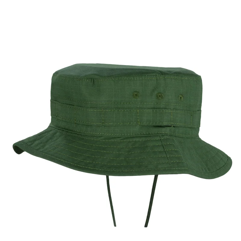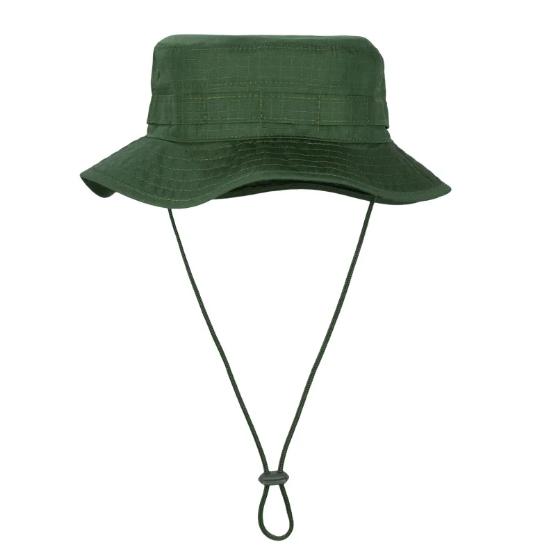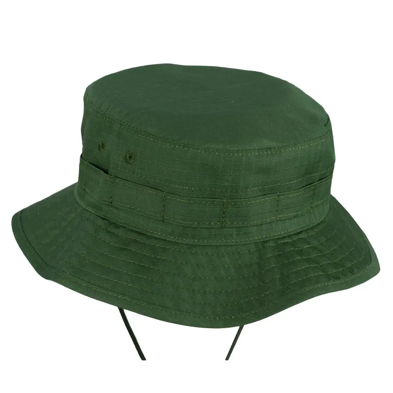 Армійська панама в кольорі Олива. Виготовлена з матеріалу Ripstop — така тканина має армуючу нитку у своїй структурі, тому тканина виходить досить міцною, а порізи та подряпини не розходяться по всій площі.