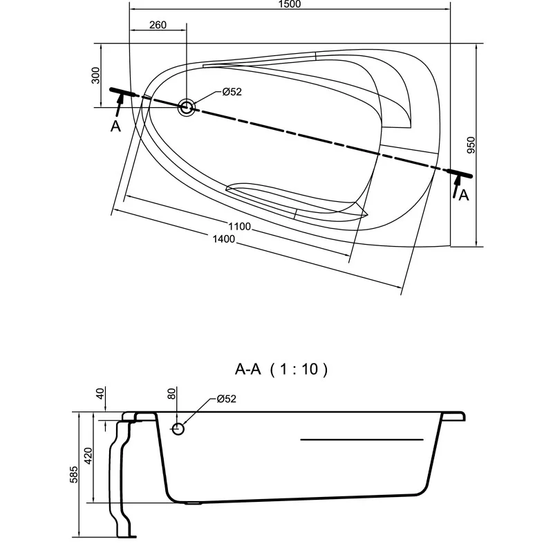 Панель д/ванни JOANNA NEW 150, ліва/права з кріпленням Cersanit