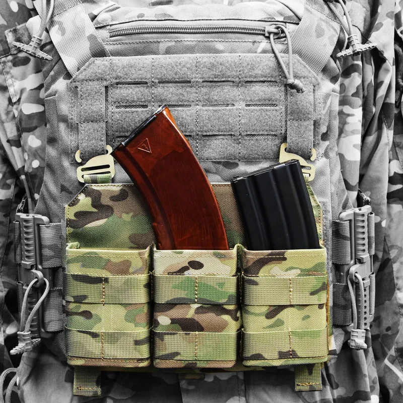 Открытая панель для магазинов AK/AR со вставками из высококачественного материала. Благодаря уникальной конструкции она надежно фиксирует магазины, которые не выпадают ни при каких обстоятельствах. Магазин надежно зафиксирован, но при небольшом усилии он извлекается. Это значительно ускоряет перезарядку и делает ваши манипуляции по изменению более эффективными и быстрыми. Благодаря отсутствию клапана или резинок, Вы имеете мгновенный доступ в магазин. Крепление на плитониске благодаря крючкам и липучкам Velcro