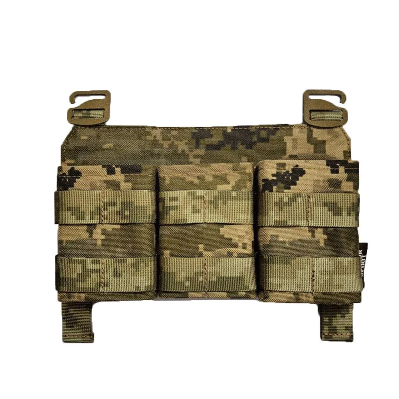 Панель под три магазина со специальными фиксирующими пластиковыми элементами внутри WS3. Разработана и усовершенствована командой Warrior Spirit с учетом многих факторов: Универсальность. Подходит под использование с АК-47, АК-74, АКМ и AR. Магазины крепко держатся внутри с помощью пластикового фиксатора специальной формы. Дополнительные верхние держатели на резинках не требуются. Жестокость. Внутри итога Warrior Spirit WS3 Pixel вставлен специальный пластиковый элемент. Задняя и передняя поверхность внутреннего пластика имеет изогнутый профиль, что позволяет фактически вслепую вставлять магазин. Компактность. Габаритные размеры изделия указывают на то, что расположение панели на передней поверхности плитоноски не мешает другим элементам амуниции. Крепление. Благодаря регулируемой системе крепления типа MOLLE, панель легко можно крепить к разным моделям плитоносок. материал Cordura D1000 крепеж для системы MOLLE Пластиковый элемент – АBS Размеры изделия (без съемного клапана) В/Ш/Т, см – 14/24/4