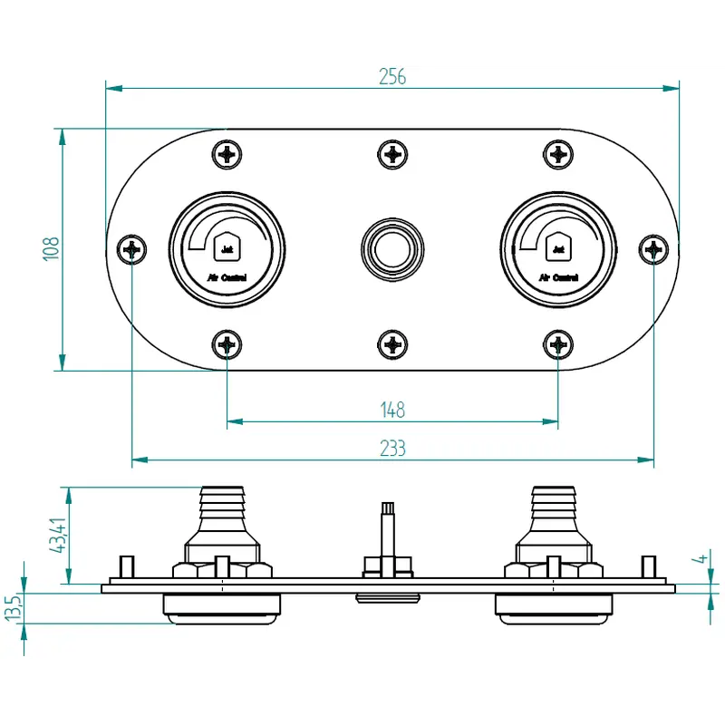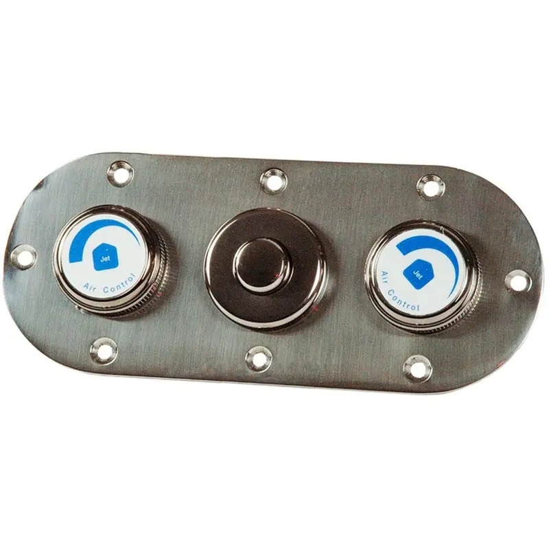 Панель управління Fitstar 8703020 – призначена для керування гідромасажним атракціоном. Панель оснащена двома регуляторами подачі повітря у форсунки та п'єзоперемикачем. Монтується в бетонні та лайнерні басейни. Виготовлена з бронзи, стійкої до корозії, дії ультрафіолету та хімічних реагентів.