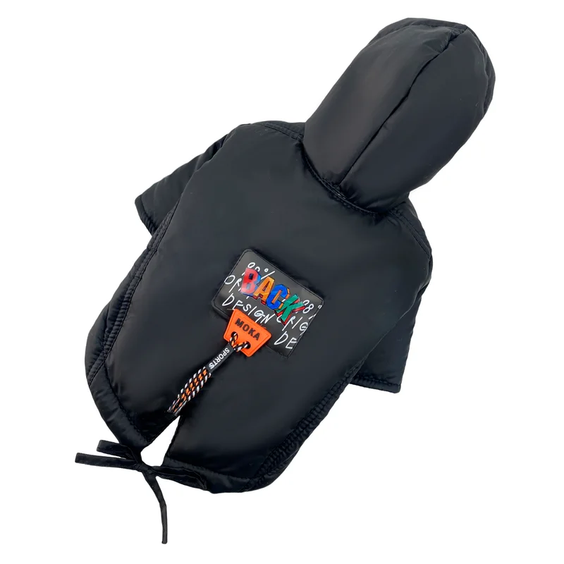 куртка виконана з водовідштовхувальної плащової тканини; наповнювач синтепон; підкладка фліс; капюшон з блискучою плащової тканини; застібається кнопками на животі, модель унісекс; на спині пришитий значок.