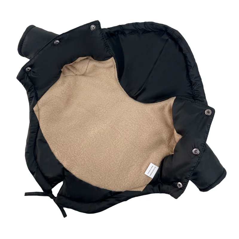 куртка виконана з водовідштовхувальної плащової тканини; наповнювач синтепон; підкладка фліс; капюшон з блискучою плащової тканини; застібається кнопками на животі, модель унісекс; на спині пришитий значок.