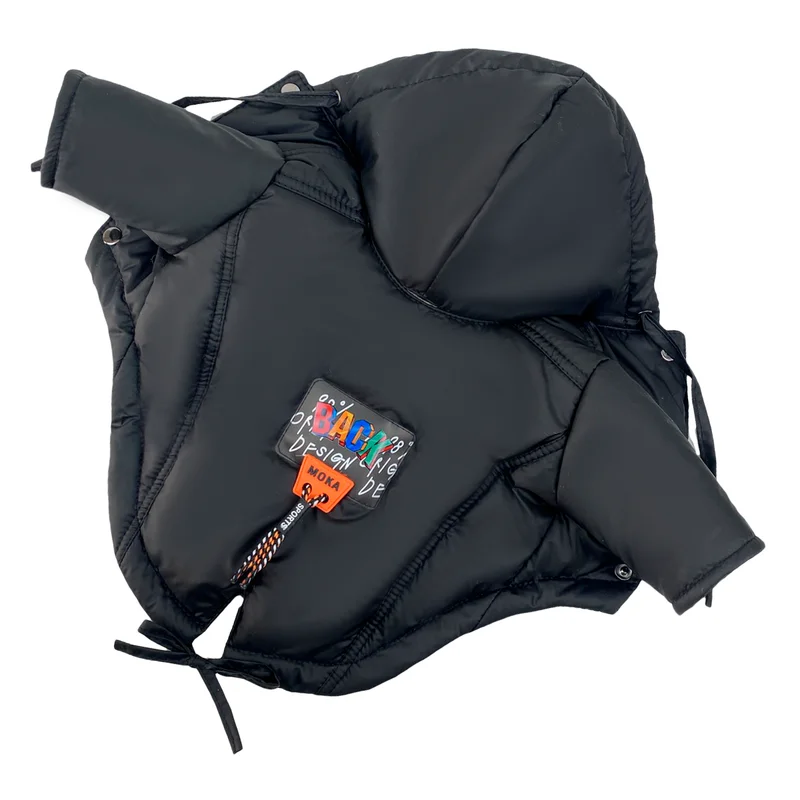 куртка виконана з водовідштовхувальної плащової тканини; наповнювач синтепон; підкладка фліс; капюшон з блискучою плащової тканини; застібається кнопками на животі, модель унісекс; на спині пришитий значок.