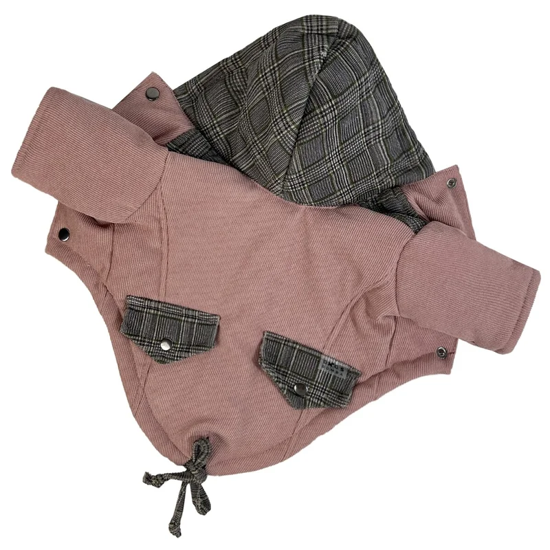 куртка виконана з вельвету наповнювач синтепон підклад водовідшхтовхувальна плащівка застібається кнопками на животі, модель унісекс; є отвір для повідця на шиї унiсекс