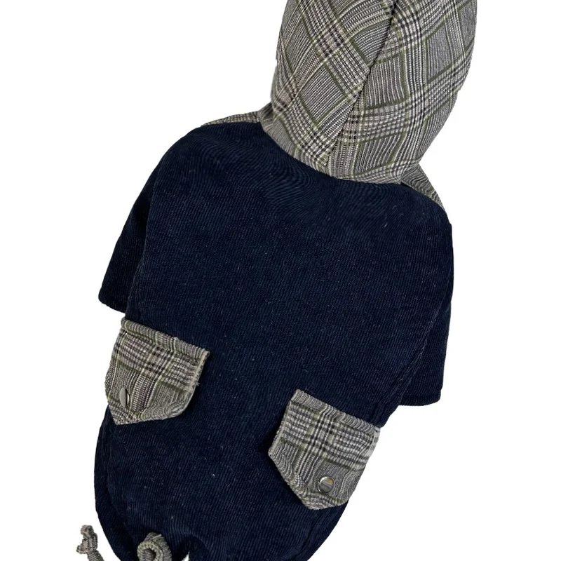 куртка виконана з вельвету наповнювач синтепон підклад водовідшхтовхувальна плащівка застібається кнопками на животі, модель унісекс; є отвір для повідця на шиї унiсекс