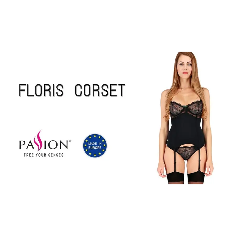 Passion Exclusive Floris Corset - Корсет с пажами и трусики, L/XL