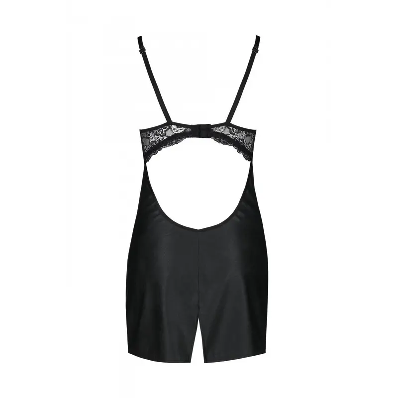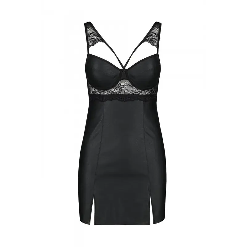 Passion Loona Chemise бебі-дол з еко-шкіри та мережива, S/M (чорний)