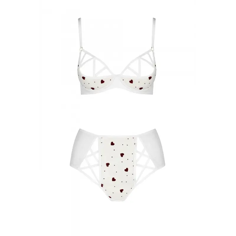 Невероятно романтическое белье с трендовыми высокими трусиками! Предлагаем купить эротический комплект с рисунком LOVELIA BIKINI white XXL/XXXL - Passion: трусики с высокой посадкой и полуоткрытой попкой плюс бюстгальтер на косточках с жесткой получашкой. Такая конструкция белья подчеркивает талию, высоко поднимает грудь и создает волнующую линию декольте. Нежные сердечки дополнительно украшают тело.