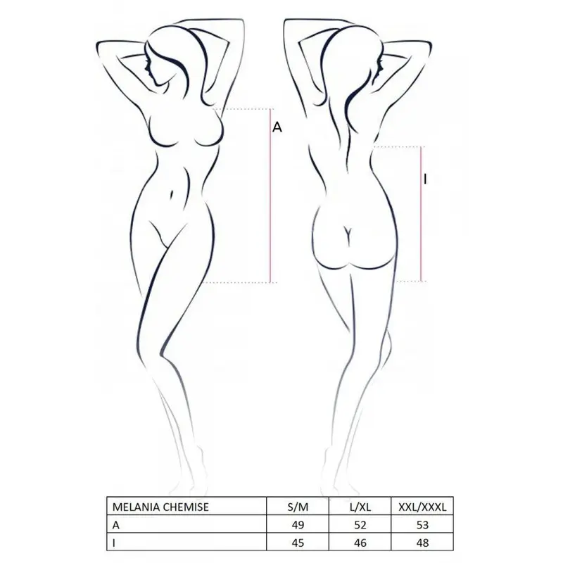Пропонуємо купити сорочку MELANIA CHEMISE black S/M - Passion, ніжну та жіночну. Вона плавно спадає прозорими складками, під якими вгадуються збудливі контури тіла. Зав'язки дозволяють регулювати глибину декольте. Стрінги - в комплекті.