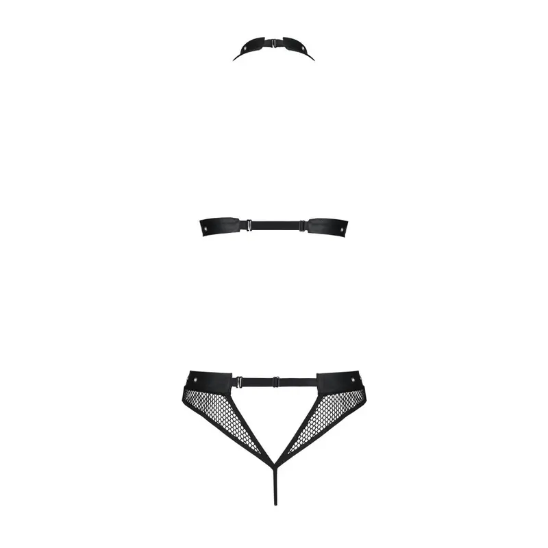 Комплект Moonlight Passion: чувственная ажурная сетка с женственными подвесками, кожаными вставками, декоративными застежками и застежкой на шею.
