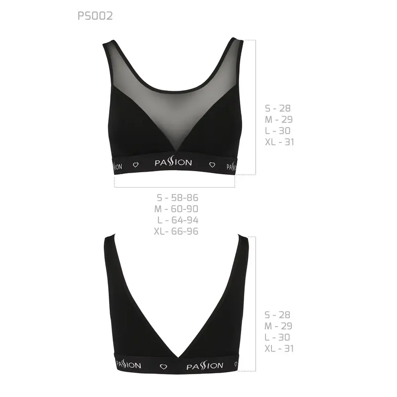 Passion PS002 TOP - Топ із прозорою вставкою, M (чорний)