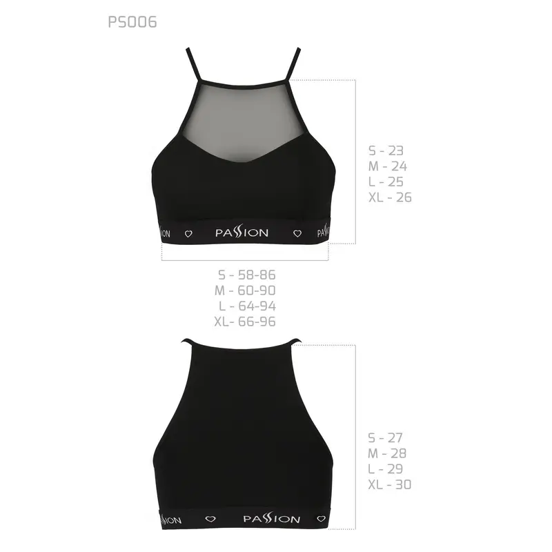 Passion PS006 top спортивний топ із прозорою вставкою, L (чорний)