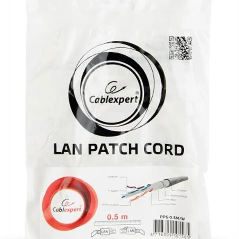 Патч-корд FTP Cablexpert (PP6-1M/W) cat.6, литий, 50u штекер із засувкою, 1м, білий