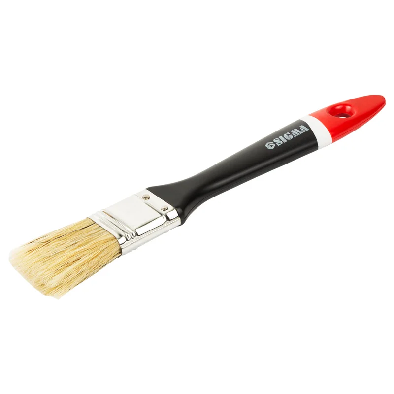Пензель флейцевий "Англійський" 1" SIGMA (8302511) виготовлений з натуральної щетини для роботи з усіма видами лакофарбової продукції, в тому числі з агресивними. Призначений для внутрішніх і зовнішніх робіт. Перевагами даного пензеля є: універсальність в роботі з будь-якими ЛФМ, ергономічна ручка з отвором для зберігання, рівномірне нанесення матеріалу на поверхню, стійкість до розчинників.