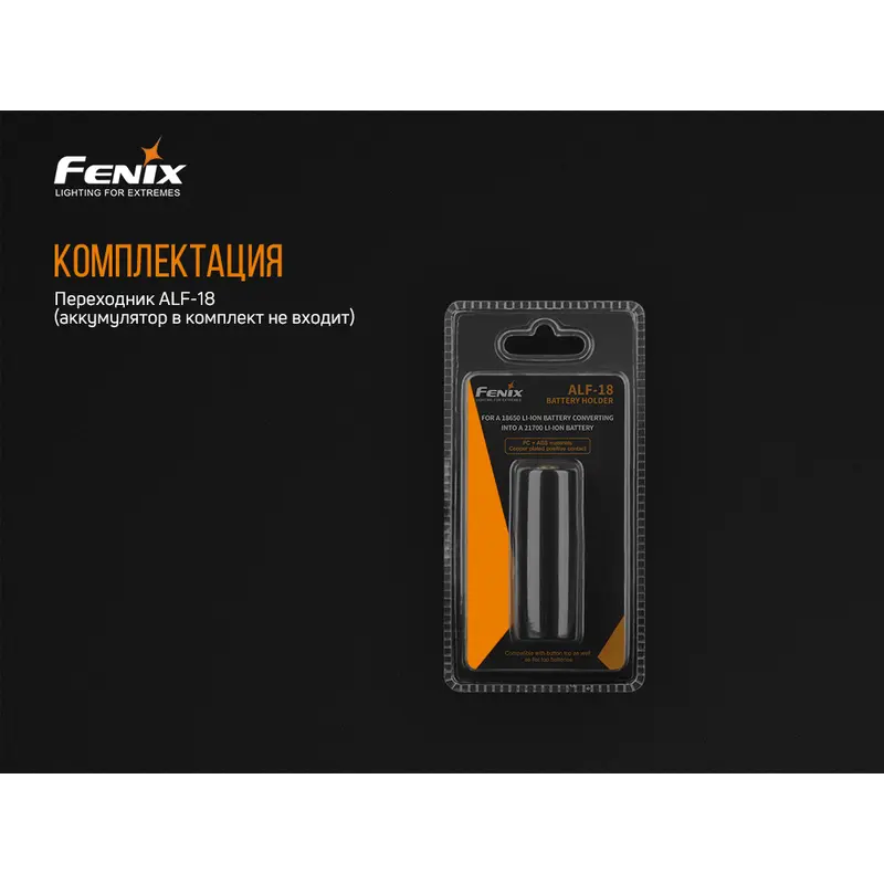 Розміри виробу становлять 61,2×21,5 міліметра. Важить тримач 6,1 грама. Комплект складається з одного перехідника ALF-18, акумулятор в набір не входить.