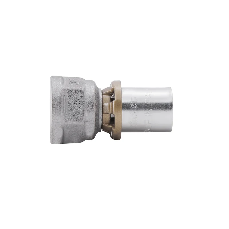 Прес-фітинг перехідник ICMA Sempiter Арт. 401 з розміром підключення 1/2"х16 для металопластикової труби спроектований для застосування в системах водопостачання, опалення, і охолодження. Прес-фітинг Sempiter з радіальним пресуванням і з внутрішнім різьбленням дуже простий, і зручний в монтажі, і спільно з металопластиковою трубою створює надійну, швидку і недорогу систему. Прес на діаметр металопластикової труби 16 мм стискає гільзу з нержавіючої сталі, яка надійно фіксує трубу на фітингу.
