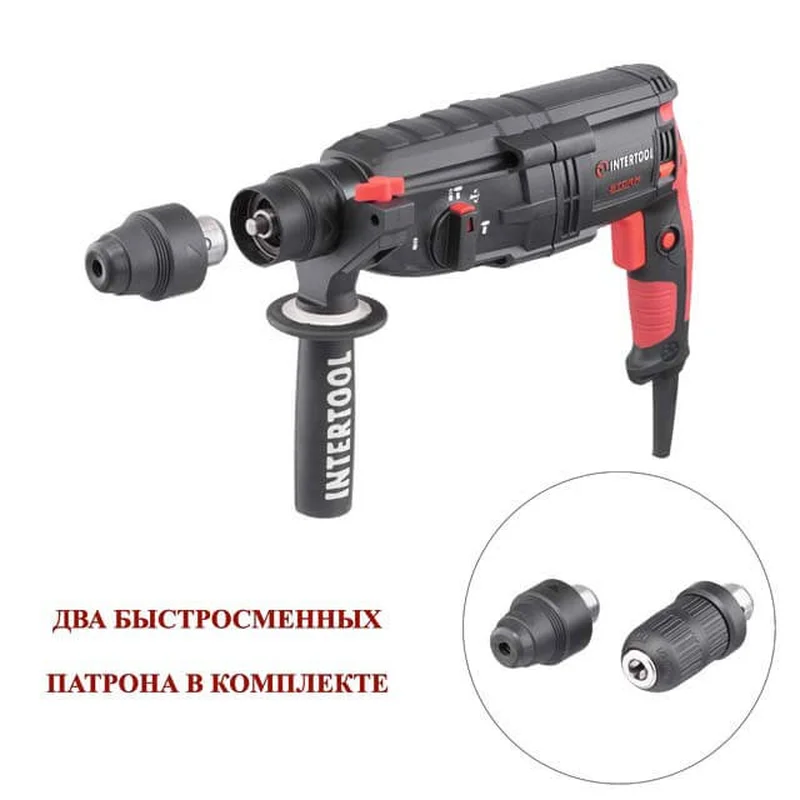 Перфоратор 1000 Вт, 3.2 Дж, 0-1300 об/хв., 0-5100 уд./хв., 3 режими, знімний швидкозатискний патрон INTERTOOL WT-0171
