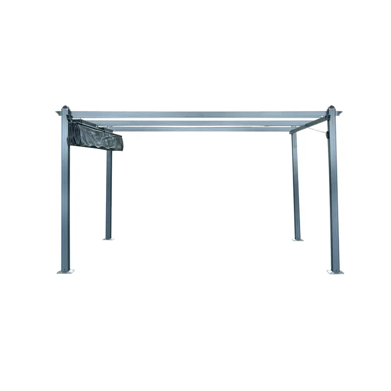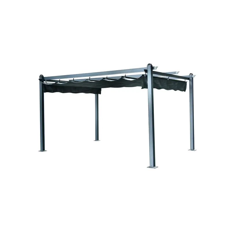 Розкішна садова пергола забезпечить вам приємну тінь у спекотні літні дні. Міцна рама виготовлена з легкого алюмінію з міцним порошковим покриттям 4 х 3 м. Ніжки виготовлені з профілю 1,1 мм 10 х 10 см, з анкерними основами 20 х 20 см. Брезент з поліестеру вагою 160 г розсувний, кріпиться на 7 стрижнях, закріплених на рухомих петлях. Це дозволяє легко маніпулювати вітрилом за потреби.