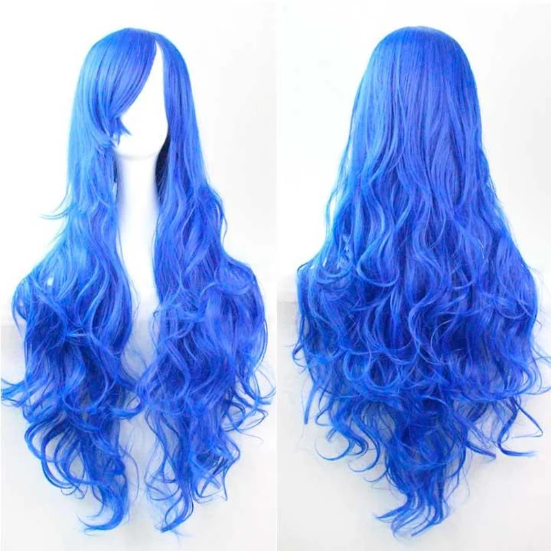 Перука хвиляста аніме косплей "Мальвіна" - 80см - Сині відтінки