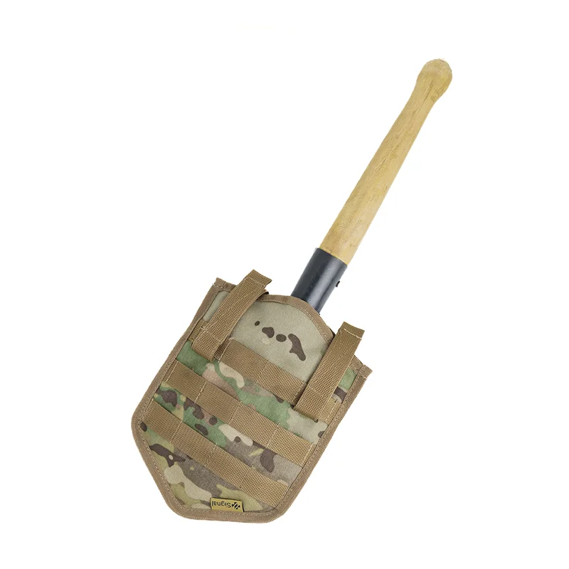 Саперна лопата надійно фіксується в чохлі за допомогою двох ременів на липучках Velcro.