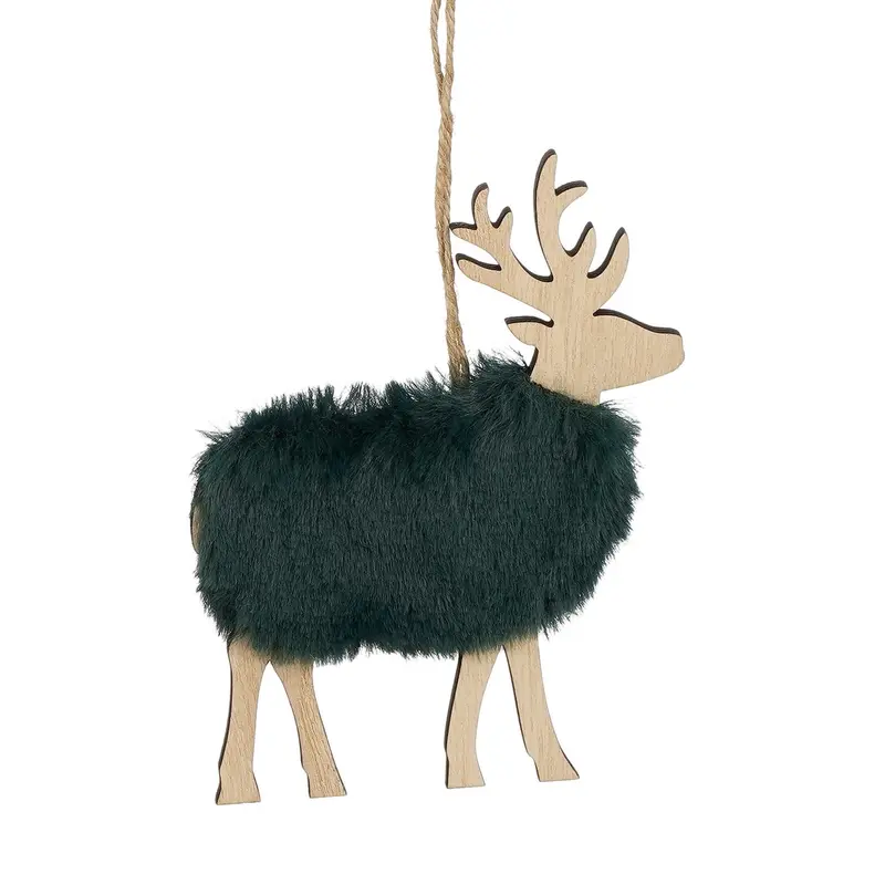 Підвіска декоративна "Олень" House of Seasons, 9 см, дерево з хутром, зелений