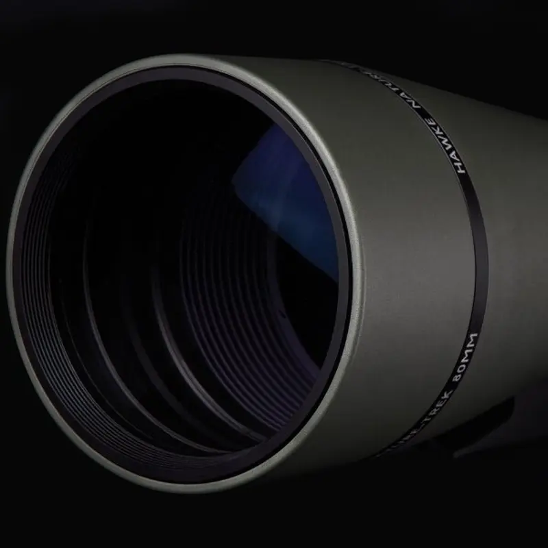 Варто відзначити так само зручність для ближніх спостережень, завдяки надзвичайно Малій дистанції фокусування. Польовий захисний чохол дуже зручний, його можна не знімати з труби під час її використання, що економить час, захищаючи прилад. Як і належить професійній оптиці, окуляр у підзорних труб Hawke Nature Trek знімний і змінний. Окулярний вузол Hawke Nature Trek розташований під кутом 45º по відношенню до поздовжньої осі труби - це дуже зручно для спостережень, як з настільних, так і повнорозмірних штативів. Корпус провертається навколо своєї поздовжньої осі і має кілька фіксованих положень для зручності точної установки в горизонтальному або вертикальному положенні, проте може бути зафіксований під будь-яким кутом. Висувна Сонцезахисна бленда захистить об'єктив не тільки від сонячних відблисків, але і від крапель дощу. Монтажна база труби адаптована під стандартне кріплення фотоштатива, так що пошук необхідної опори для спостереження - не проблема.