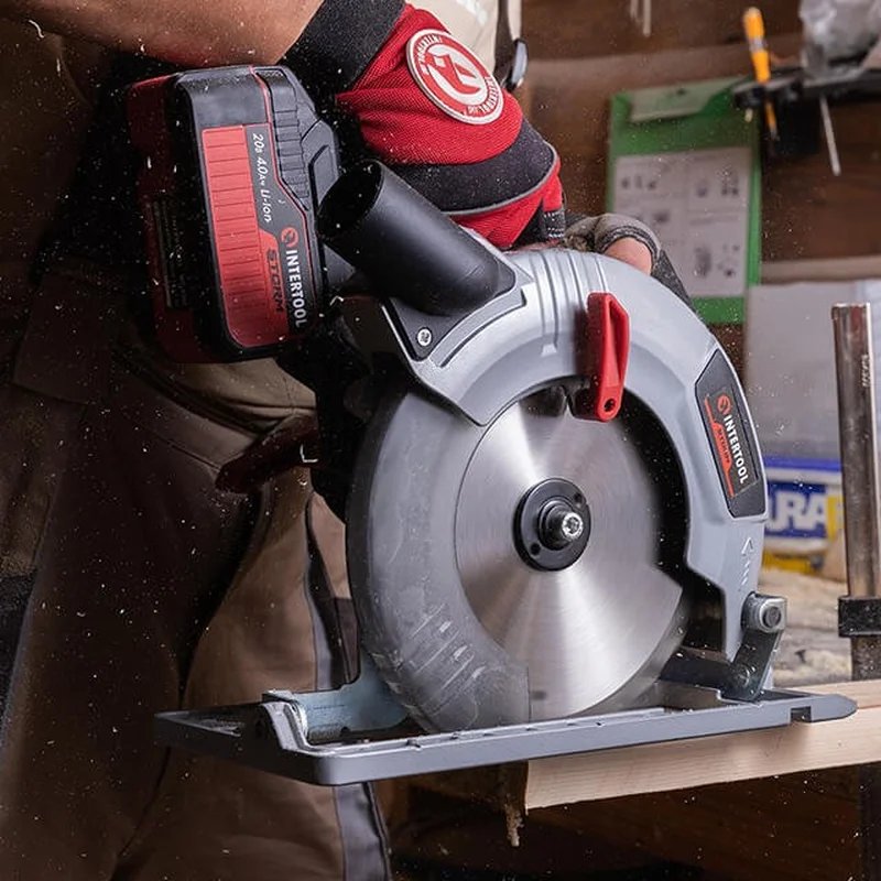 Пила дискова акумуляторна з безщітковим двигуном 20 В, 4500 об/хв., кут 90°/45°, глибина розпилу 62/45 мм, диск 190*20 мм, без ЗП та АКБ INTERTOOL WT-0371
