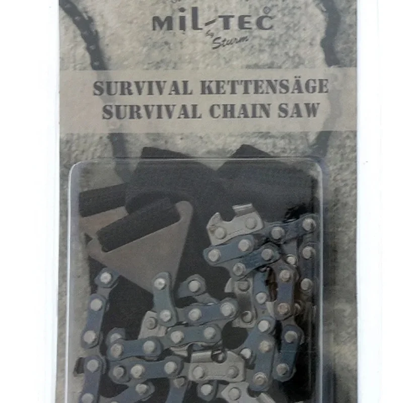 Необходимый инструмент для путешественников, отдыхающих и охотников. Будучи совсем маловесные и компактная (зубы легко складывается), пила очень удобны в транспортировке. Положил ее в карман куртки или рюкзак - и в путь! Отлично подходит модель также для использования в домашнем и дачном хозяйстве. Несмотря на свои скромные размеры и простоту исполнения, ручная пила-цепь считается одной из самых надежных. Не раз она спасала жизни, помогая заготовить дрова в экстремальных условиях. Собственно, для таких целей ее сначала и придумали. Еще во времена Советского Союза инструмент подобной конструкции был обязательным компонентом «носится аварийного запаса» (НАЗ) летных экипажей и солдат спецподразделений. Ручная цепная пила Мил-Тек легко распиливает корни, ветви, бревна. «По зубам» ей также пластик. Звенья цепи скрепляется обычные заклепки. Режущая часть зубов выполнена (загнута) с таким расчетом, чтобы дерево при протягивании пилы влево-вправо распыляют в обе стороны. Поскольку сама цепь оксидированная, а непосредственно зубчика изготовлены из нержавеющей сплава, обеспечивается хорошая сопротивляемость ржавчина. Чтобы пила нормально работал, необходимо его прогибать, опуская рукоять. Таким образом, она будет охватывать дерево, сталкиваясь с ним в основном рабочей поверхности. А цепь не зажимал в дереве, стоит держать угол около 45 градов. Это легче выполнить, когда работаешь в паре. В целом, угол наклона цепи к распыляют объекта может быть любым. Особенно полезным будет эта черта в малодоступных местах, где пилить неудобно. Цепная карманная пила имеет рукоятки-лямки с нейлоновой стропы (крепятся к треугольной пряжке). Они удобно ложатся в руку. Добротно прошиты. Во время работы швы не разойдутся, а стропа, растягиваясь, не лопнет. Единственный нюанс, на который стоит обратить внимание: при частой эксплуатации (сдавливания) лямка может сворачиваться, комкаться и, таким образом, натирать ладонь. Чтобы защититься от травм, надевайте хлопчатобумажные рабочие перчатки. И после каждого использования пилы не ленитесь распрямлять ленту - это поможет как можно дольше сохранять первоначальную форму ручек. Рекомендуем! Если тема производного туризма и выживания в лесу Вам близка, ознакомьтесь также с карманной модели «пила-струна с кольцами». Для несложных работ по заготовке древесины - это оптимальный и к тому же недорогой вариант.