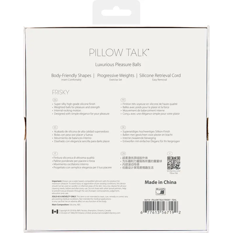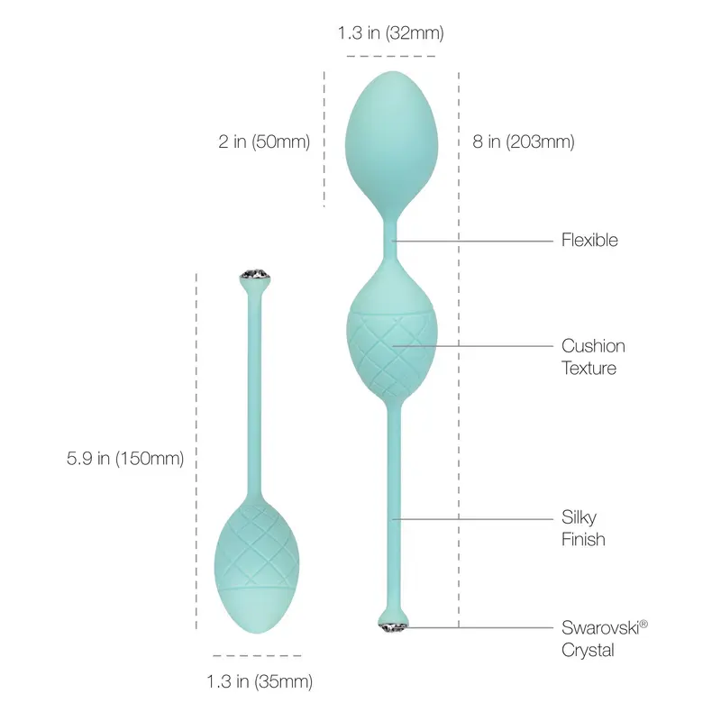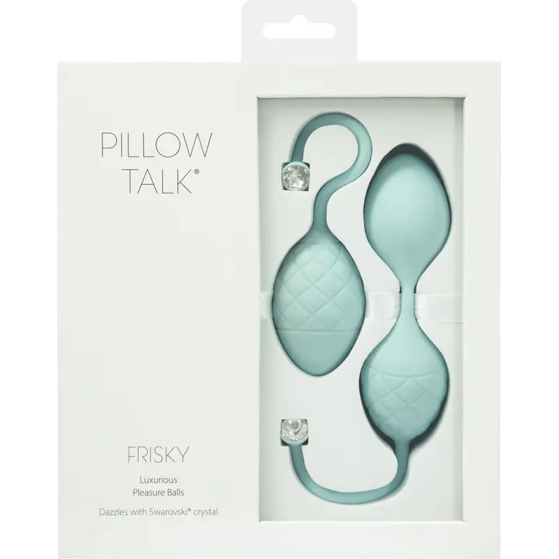 Щоб підвищити своє сексуальне задоволення та зміцнити вагінальні м'язи, рекомендуємо купити розкішні вагінальні кульки Pillow Talk - Frisky Teal із кристалами Swarovski. Шикарний шовковистий силікон і сліпучі кристали Сваровські роблять кульки не просто корисним девайсом, а й лакшері-аксесуаром. Набір з одинарної та подвійних кульок зі зміщеним центром ваги дозволяє ретельно опрацювати глибокі м'язи. Кульки різного розміру для максимальної ефективності.