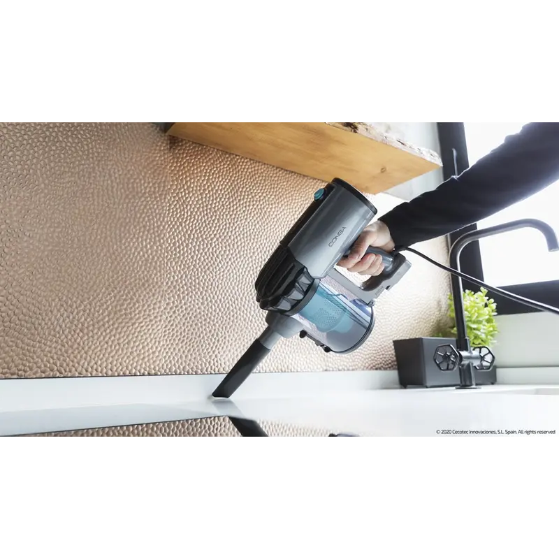 Вертикальний пилосос Cecotec Conga ThunderBrush 560 Вихідні для вас не тільки радість і розслаблення, а й тривожні думки про попередню прибирання? Думаєте, прибирання з мінімумом зусиль неможливо? Тільки не з пилососом Cecotec! З потужністю 600 Вт він відмінно прибирає, а також має багато функціональних насадок для прибирання стелі, шаф, м"яких меблів і навіть салону автомобіля. Радіус роботи з проводом становить 6 м. Циклонічна технологія Циклонічна технологія UltraPower без мішка зберігає колишню потужність всмоктування навіть після довгого часу експлуатації. Ергономічна конструкція Бездротова легка конструкція з трубкою 360º і з ергономічним дизайном дозволяють працювати з різними поверхнями на різних рівнях: від підлоги до стелі. Високоефективний фільтр Завдяки високоефективному фільтру ви рятуєтеся від 99,9% бактерій, пилу і шкідливих мікроорганізмів. Аксесуари в комплекті У комплекті поставляються наступні аксесуари: комбінована щітка 2 в 1: допоможе пропилососити м"які меблі щілинна насадка 2 в 1: підійде для важкодоступних місць і салону автомобіля настінний кронштейн для зберігання пилососа у вертикальному положенні Великий контейнер для сміття і низький рівень шуму Пилосос Cecotec оснащений контейнером для сміття об"ємом 500 мл, цього достатньо на прибирання найбільших приміщень. Пилосос шумить значно менше (80 дБ), ніж інші з такою ж силою всмоктування.