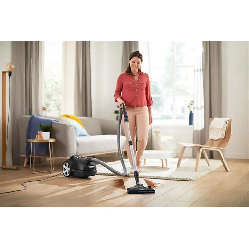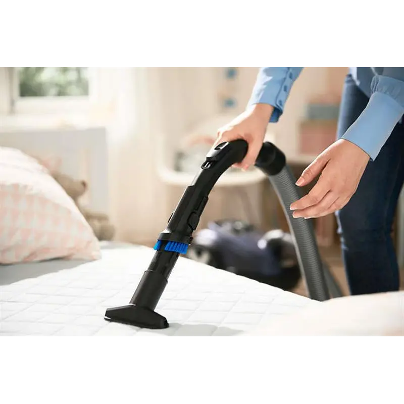 Чиста підлога – здоровіший дім. Philips Performer Silent містить вдосконалені насадки для ретельного захоплення бруду і дрібного пилу для здорового середовища. Пристрій створює шум лише 66 дБ, тому також є нашим найтихішим пилососом. Потужний і економічний Пилосос Philips FC8785/09 відноситься до економічному класу енергоспоживання А +. Оснащений вдосконаленим двигуном, пилосос поєднує в своїй роботі високу потужність всмоктування і низьке споживання електроенергії. Тиха робота Свідченням тихої роботи пилососа Philips FC8785/09 є сертифікат Quiet Mark, який отримала ця модель. Пилосос має сучасний безшумний мотор, в його конструкції передбачені спеціальні повітряні канали і глушники, щоб робота техніки навіть у вечірній час нікого не турбувала. Рівень шуму пилососа не перевищує 66 дБ. Антиалергенний фільтр Система фільтрації затримує до 99,9% джерел побутової алергії (пил, пилок, шерсть тварин, пилові кліщі). Пилосос забезпечує чисту затишну атмосферу в вашому домі. Модель отримала сертифікат ECARF і схвалена для використання в приміщеннях, де знаходяться алергіки. Насадка TriActive Pro Основна насадка TriActive Pro має вдосконалену конструкцію для ефективної і швидкої прибирання будь-яких поверхонь: від ламінату до ворсистого килима. Насадка щільно прилягає до твердої поверхні або «занурюється» в килим, забезпечуючи глибоке очищення і повне видалення сміття, пилу, крихт. Турбощітка Насадка з вбудованою турбощіткою ефективно прибирає пил, шерсть тварин, волосся з оббивки м"яких меблів, килимових покриттів, килимів. Насадка має поворотну конструкцію і обертову щітку, це дозволяє швидко і більш ретельно прибрати в кімнаті. Насадка для паркету Така делікатна поверхня, як паркет, вимагає максимально дбайливого догляду. Використовуйте для прибирання паркету спеціальну насадку з м"якою щетиною. Насадка не залишає подряпини на поверхні і відмінно прибирає сміття. Зручне прибирання Радіус дії Philips FC8785/09 дорівнює 12 м. Для збирання великого приміщення більше не потрібно перемикати пилосос з однієї розетки в іншу. Вбудована щітка У ручку пилососа Philips FC8785/09 вбудована м"яка щітка, яка допоможе прибрати крихти зі столу, пропилососити подушки дивана, видалити пил з плінтусів.