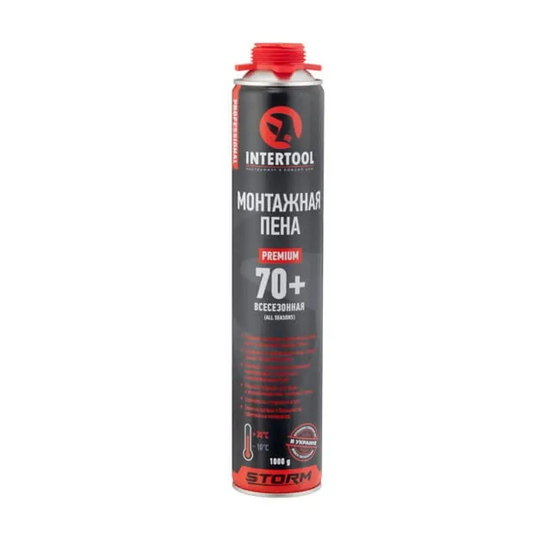 Піна монтажна професійна, всесезонна, 750 мл / 1000 г, 70+ л, під пістолет STORM INTERTOOL FS-1000