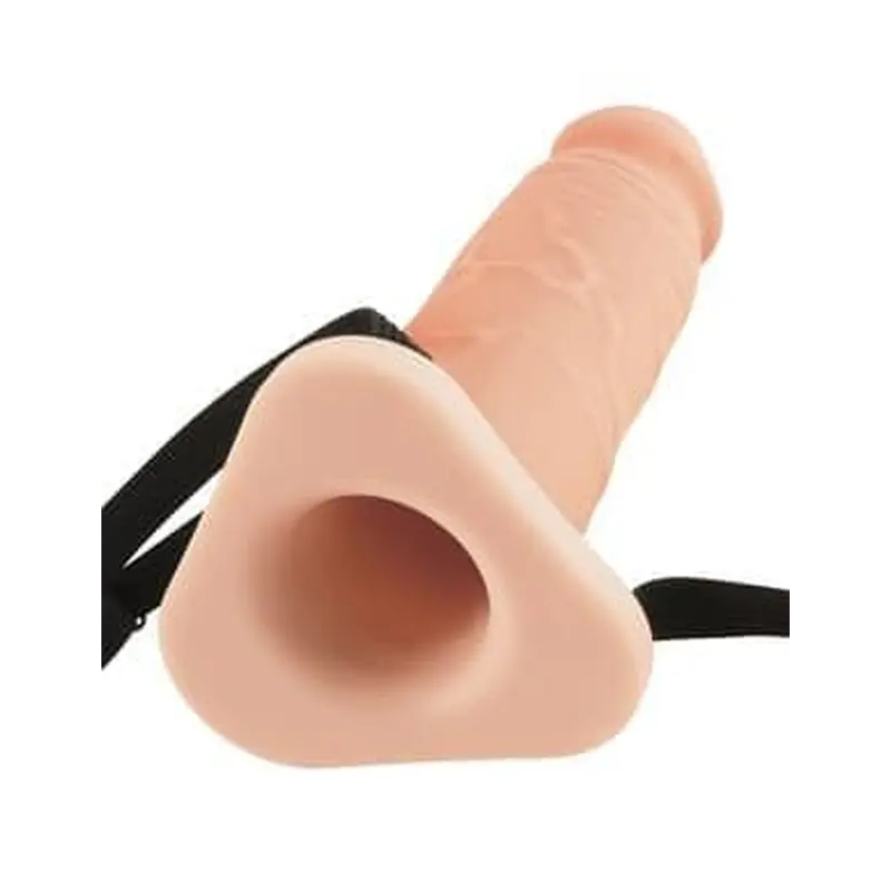Насадка-увеличитель для пениса, представляет собой полый страпон, который подойдет для всех размеров. Реалистичный полый фаллоимитатор, длиной 20 см, с конической головкой для комфортного и мягкого проникновения, снаружи изготовлен из супер-мягкого элитного силикона, внутренняя полость имеет Lov-touch покрытие, для исключительного комфорта. Достаточно большое внутреннее отверстие, диаметром 4 см. легко вмещает большинство размеров и очень комфортно и приятно для кожи. Фиксируется страпон эластичными ремнями, регулируемыми до 127 см в талии.