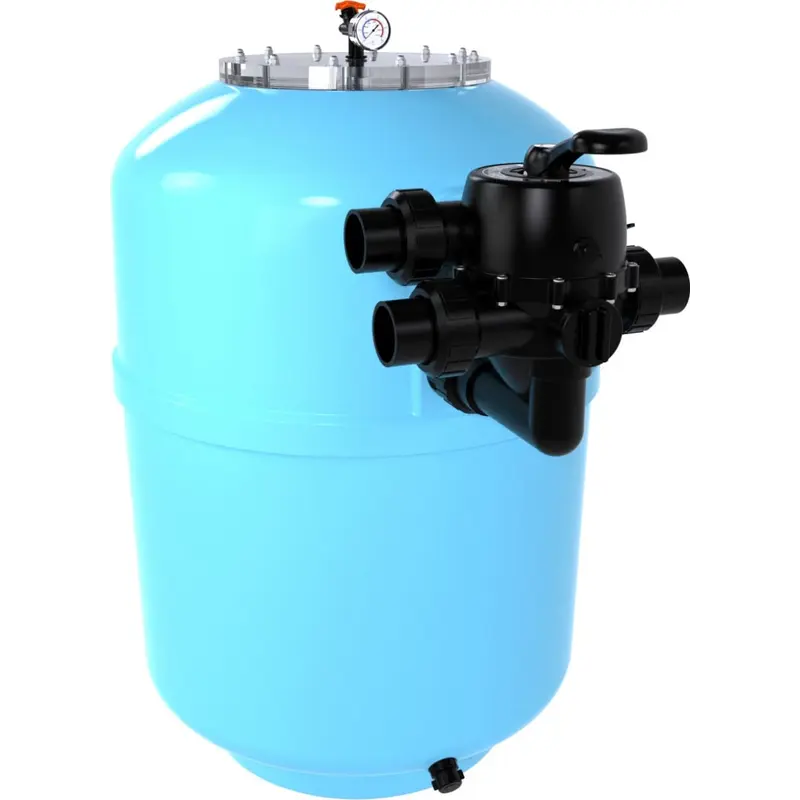 Боковий пісочний фільтр для басейну Emaux GAC750 призначений для механічного очищення води в приватних басейнах та SPA об'ємом до 90 000 л. Корпус виготовлений із полімеру, посиленого скловолокном. Фінішне просочення корпусу забезпечує захист від вологи та УФ. У комплекті: боковий 6-режимний кран, муфти, манометр.