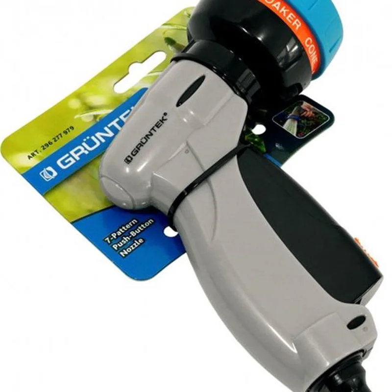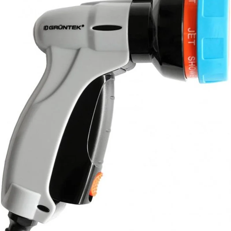 Надійний пістолет Gruntek призначений для ефективного поливу газону, клумб, чагарників, а також для миття садового інвентарю й техніки, для миття машини, для змивання бруду зі сходів і доріжок. Пістолет для поливу легко регулює подавання води із 7 типами струменя: від точкового струменя до великого розпилення, що дає змогу виконувати різні типи робіт: від поливу до збирання. Є можливість зафіксувати кнопку увімкнення, полегшує напругу на руку в процесі поливу. Прискорює процес поливу садових рослин, допомагає силою напору змити навіть скам’янілий бруд із садового інвентарю й допомагає впоратися з побутовими завданнями на дачній ділянці, у саду. Особливості: 7 типів струменя кнопка фіксації увімкнення