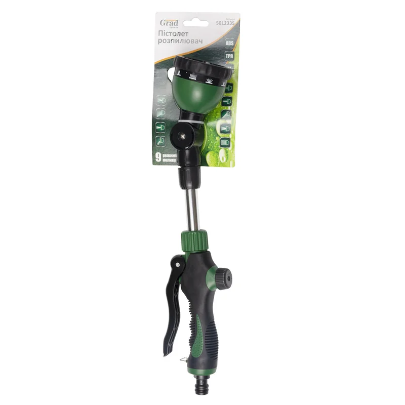 Пістолет-розпилювач 9 режимів з подовжувачем 400мм поворотний (пластиковий) GRAD (5012335)